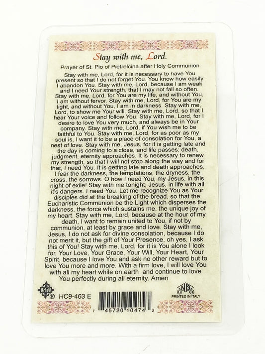 St. Padre Pio "Stay With Me" Laminated Holy Card