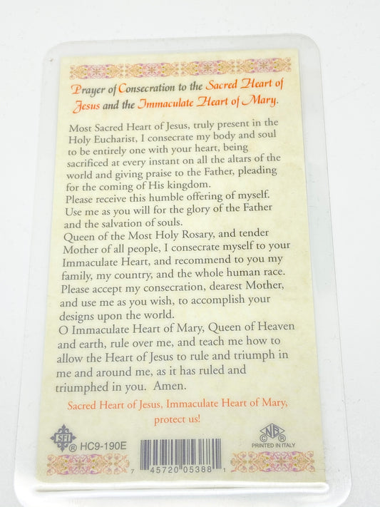 The Sacred Hearts Laminated Holy Card (Plastic Covered)