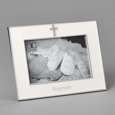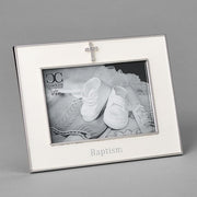 Baptism Picture Frame with Silver Cross 5.5"H