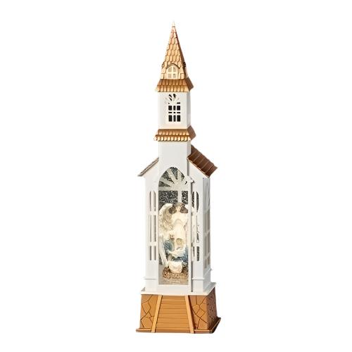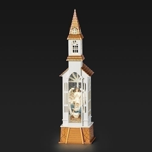 Lighted Swirl Church with Holy Family Nativity Scene 18"