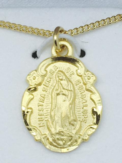 Gold over Sterling Silver Our Lady of Guadalupe Medal 3/4" with chain, box and velvet bag