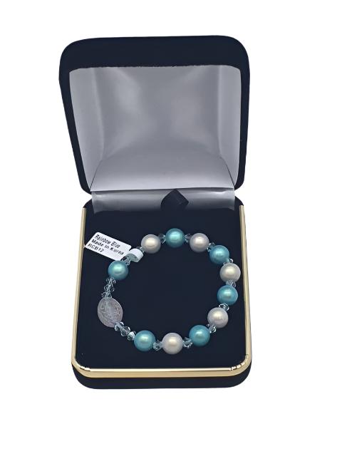 Fine Aqua Drops Children's Rosary Bracelet