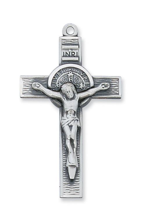Sterling Silver St. Benedict Crucifix 1 3/4" with Chain