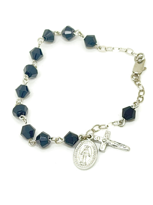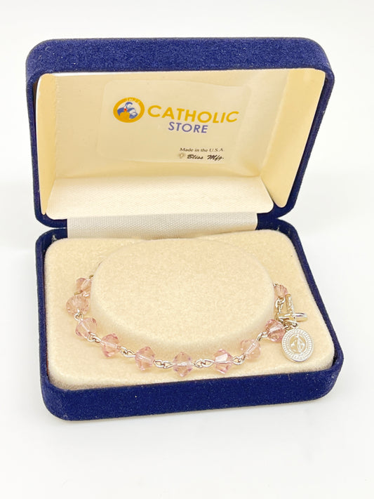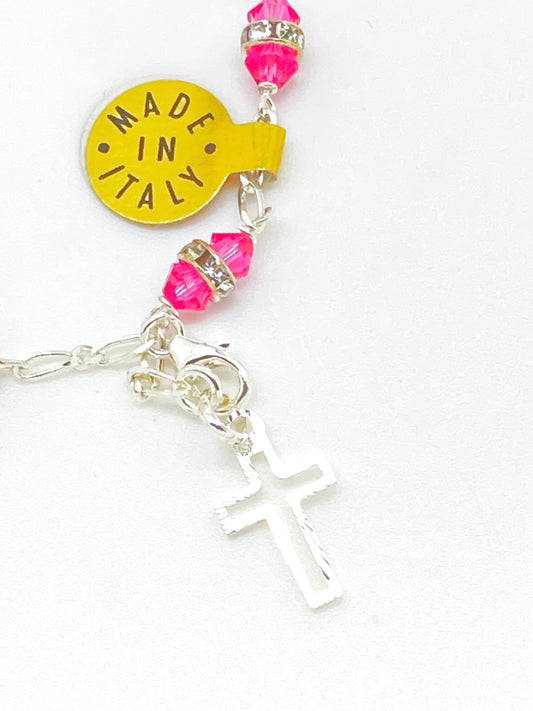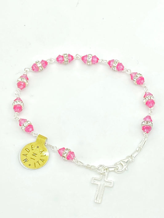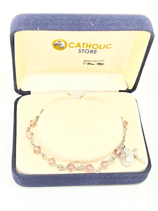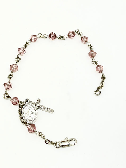 Rose Australian Swarovski Crystals and Sterling Silver Rosary Bracelet 6mm