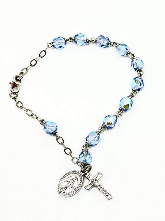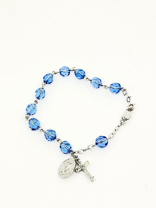 Light Sapphire Crystal Rosary Bracelet 7MM