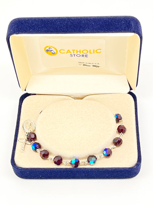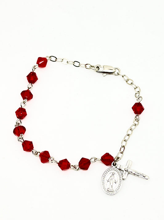 Red Ruby Rundell Crystal Rosary Bracelet 6MM