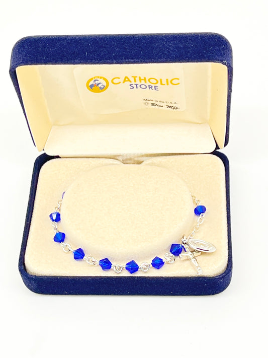 Blue Sapphire Crystal Rosary Bracelet 7MM
