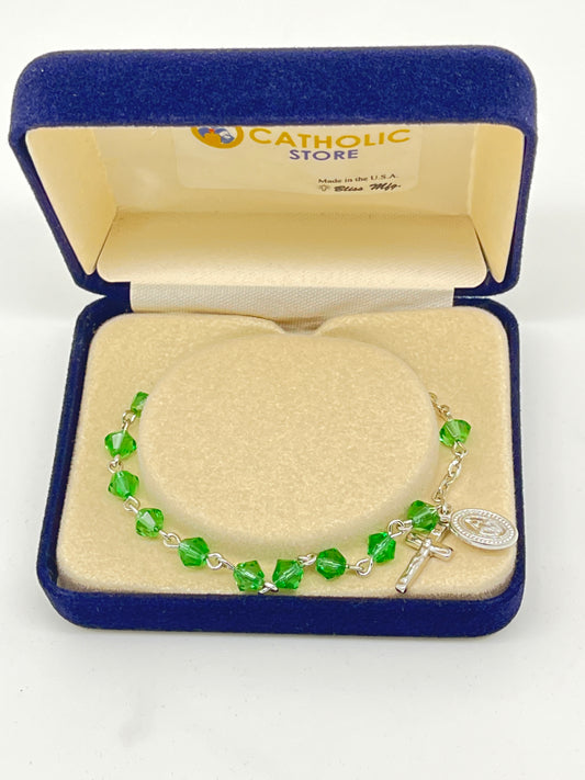 Peridot Rundell Crystal Rosary Bracelet 6MM