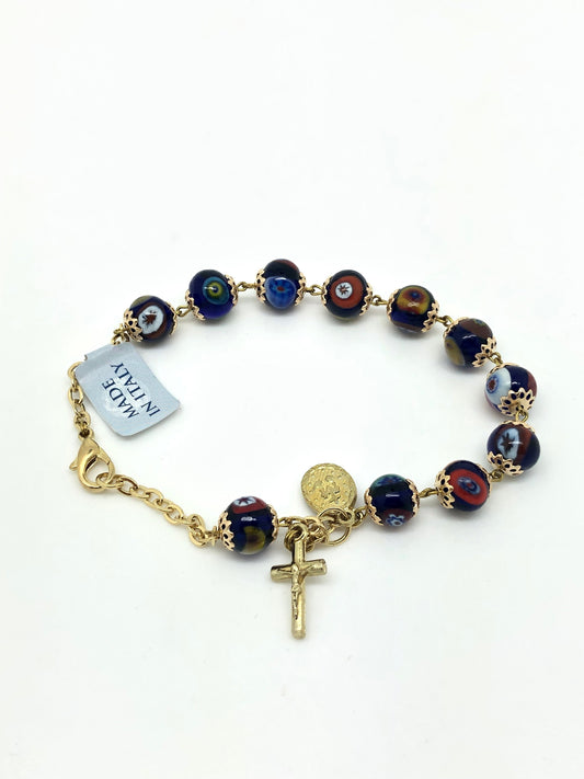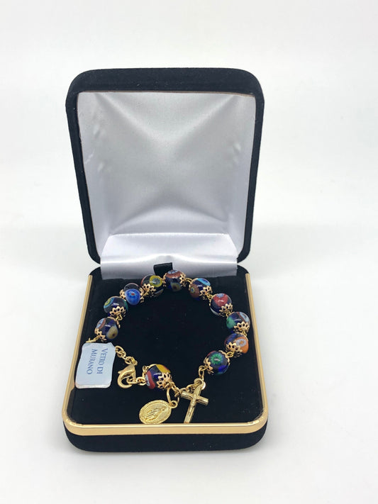 Mosaic Murano Glass Rosary on Gold Chain Bracelet (8MM)
