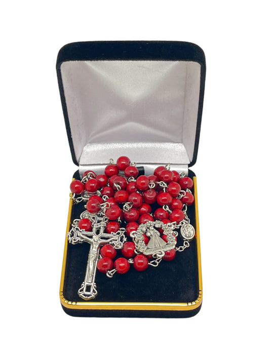 Red Wood Divine Mercy Rosary 22"