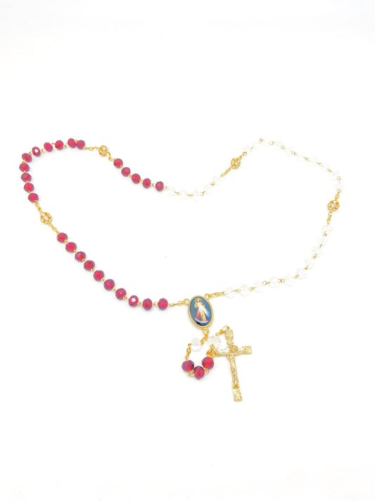 Red and Clear Divine Mercy Crystal Rosary Gold