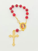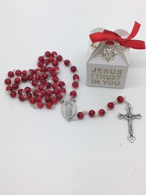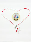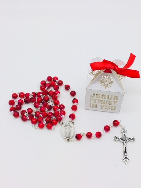 Red and White Divine Mercy Wood Rosary