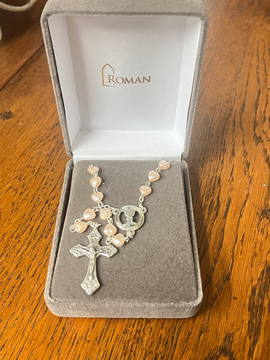 Heart Pearl Communion Rosary 18"