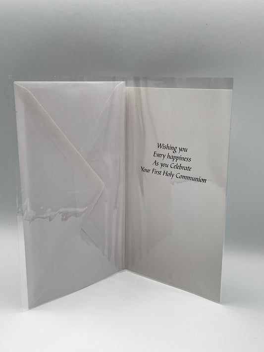 Choose from a wide variety of beautifully designed greeting cards for First Communions. Perfect for parents, godparents, relatives, and friends to celebrate this special occasion.