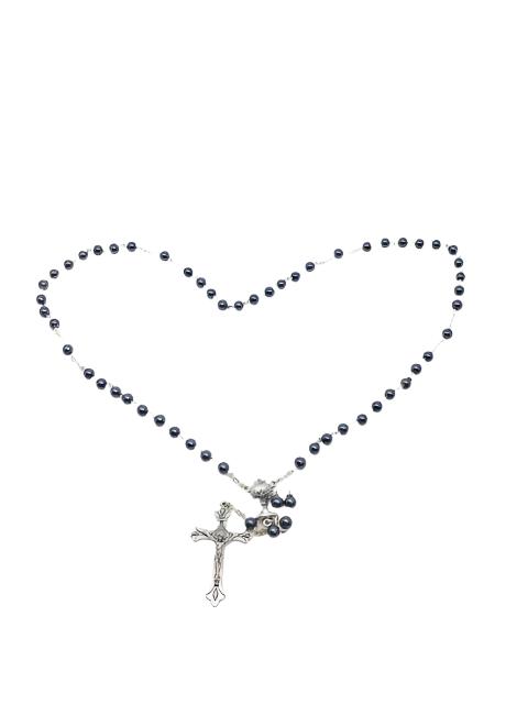 Pearl Rosary (5 mm) with Rhodium and Blue Enamel Miraculous Medal Center