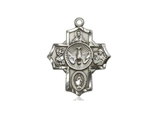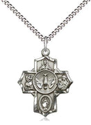 Sterling Silver 5-way Medal Cross 1 1/4" with chain