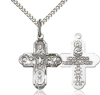 Sterling Silver 4-way Medal 1 1/4" with Chain
