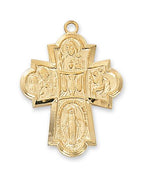 Gold over Sterling Silver 4-way Medal 3/4" with Chain