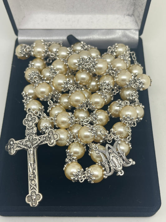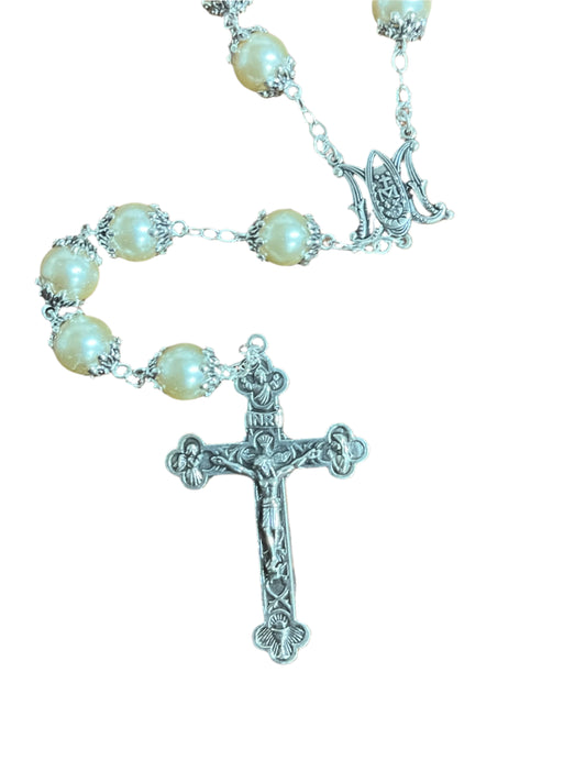 Pearl and Glass Rosary 6mm