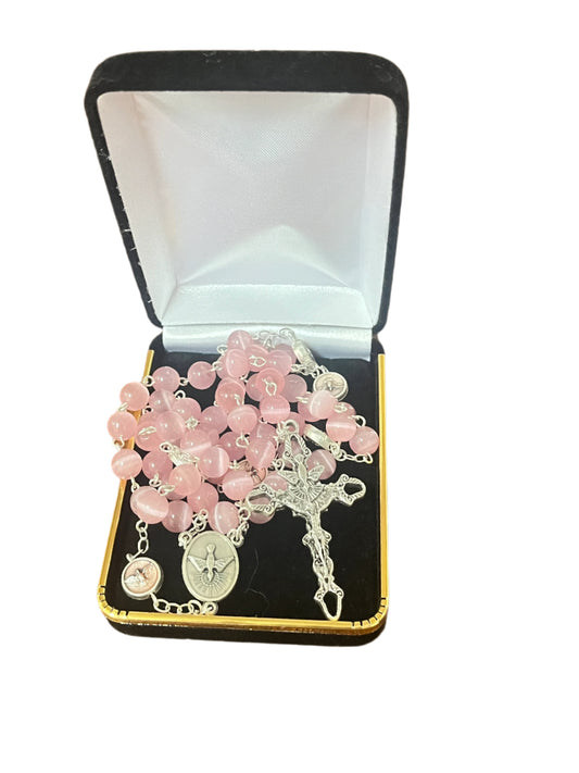Pink Tiger's Eye Holy Spirit Rosary from Fatima 7MM