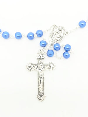Blue Glass First Communion Rosary 6mm