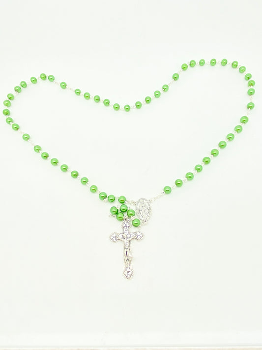 Green Glass Bead Rosary 7mm