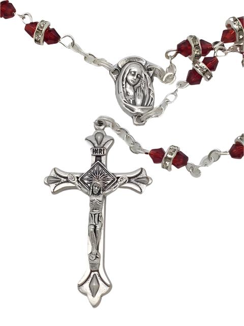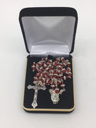 Holy Trinity Red Glass and Roses Rosary 10mm