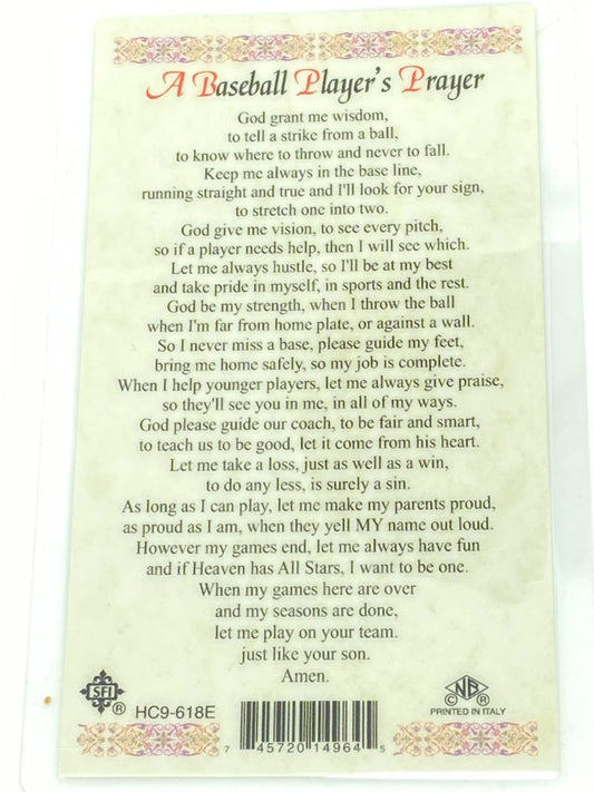 Baseball Player's Prayer Laminated Holy Card (Plastic Covered)