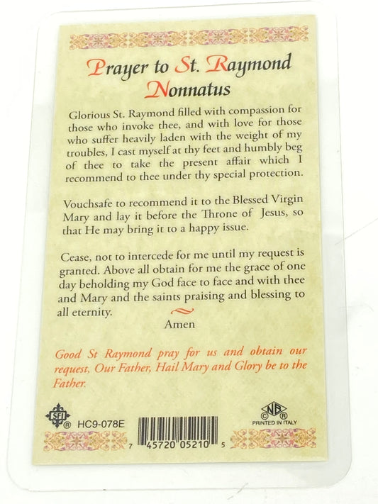 St. Raymond Nonnatus Laminated Holy Card
