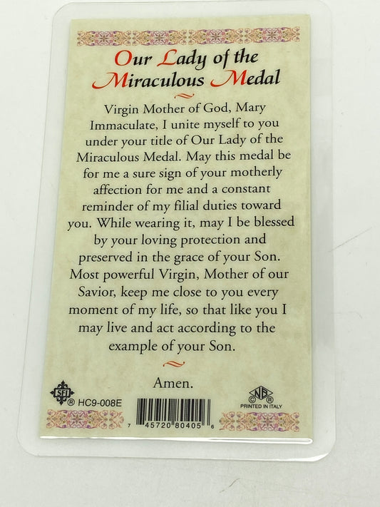 Our Lady of the Miraculous Medal Laminated Holy Card (Plastic Covered)