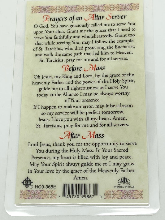 Prayers of the Alter Server Laminated Holy Card (Plastic Covered)