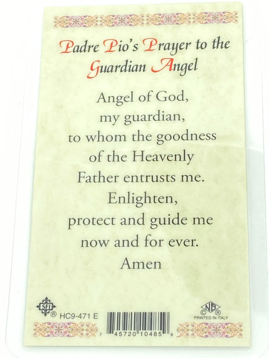 Padre Pio's Guardian Angel Prayer Laminated Holy Card (Plastic Covered)