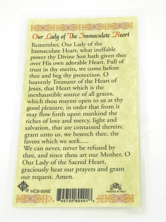 Our Lady of the Immaculate Heart Laminated Holy Card (Plastic Covered)