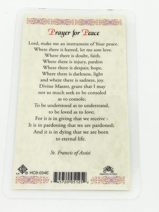 St Francis Prayer for Peace Laminated Holy Card (Plastic Covered)