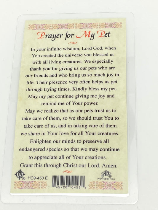 St Francis Prayer for Pets Laminated Holy Card (Plastic Covered)