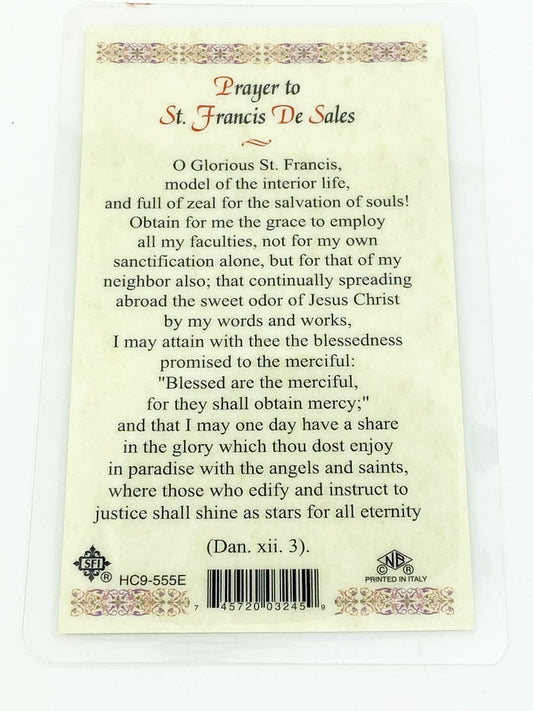 St Francis de Sales Laminated Holy Card (Plastic Covered)