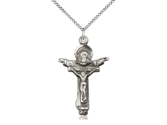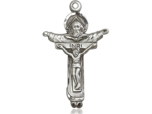 Sterling Silver Trinity Crucifix Pendant on a 18 inch Sterling Silver Light Curb Chain