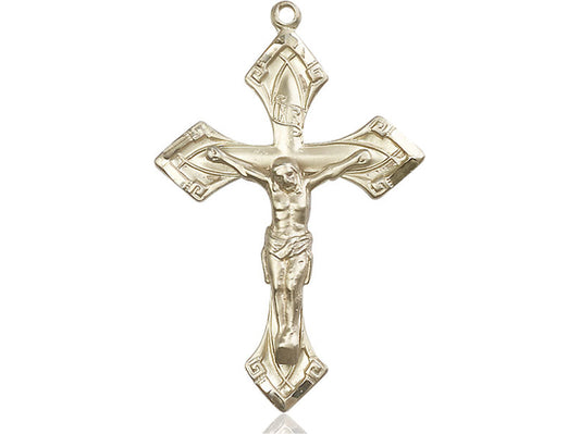 Gold Crucifix Pendant with Heavy Curb Chain