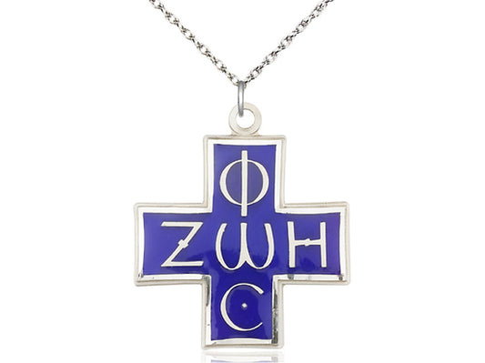 Greek Crucifix Pendant on a Sterling Silver Chain