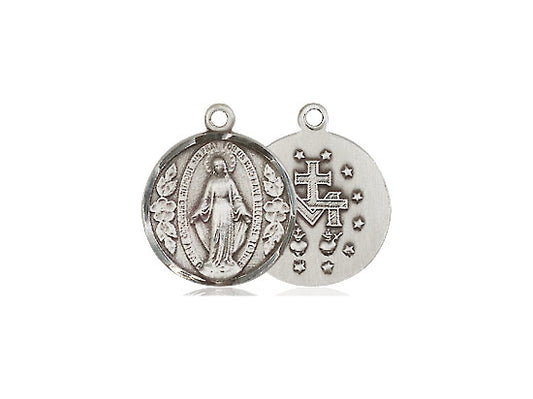 Sterling Silver Miraculous Pendant on a 18 inch Sterling Silver Light Curb Chain.