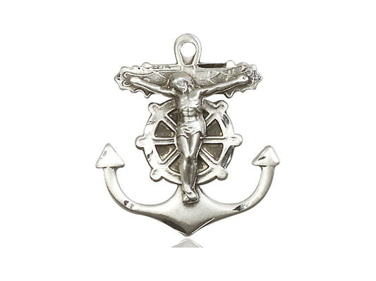 Sterling Silver Anchor Crucifix Pendant on a 18 inch Sterling Silver Light Curb Chain