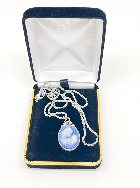 Blue Wood Catholic Symbol Rosary 8mm and box
