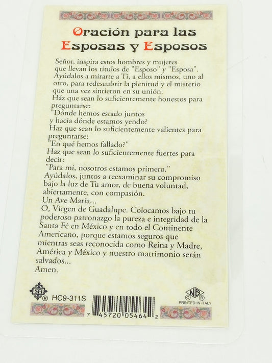 Esposas y Esposos Tarjeta Sagrada targeta de oración de Nuestra Señora de Guadalupe laminada (Cubierta de Plástico)
