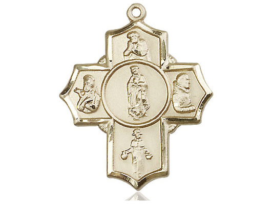14kt Gold Filled 5-Way Our Lady of Guadalupe Pendant on a 24-Inch Gold Plate Heavy Curb Chain