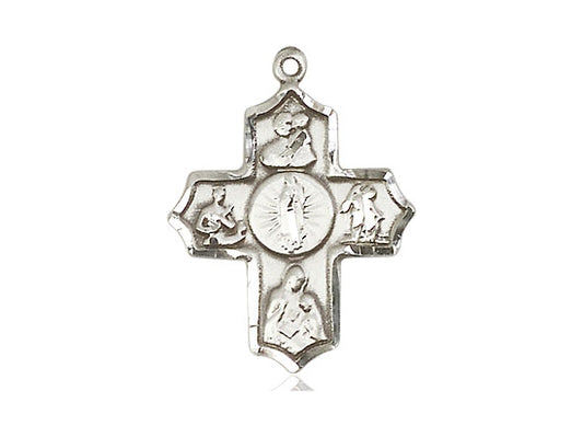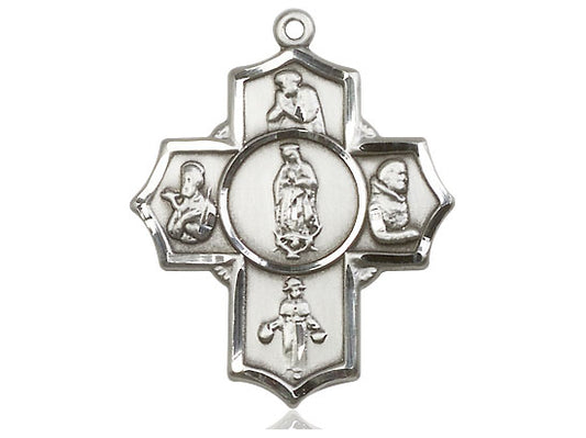 Sterling Silver 5-Way Our Lady of Guadalupe Pendant on an 18-Inch Sterling Silver Light Curb Chain
