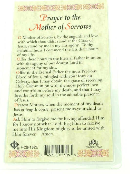 Mother of Sorrows Laminated Holy Card (Plastic Covered)