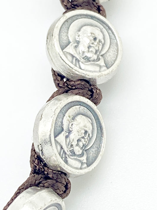 Saint Padre Pio Italian Medals and Slip Knot Bracelet (Brown)