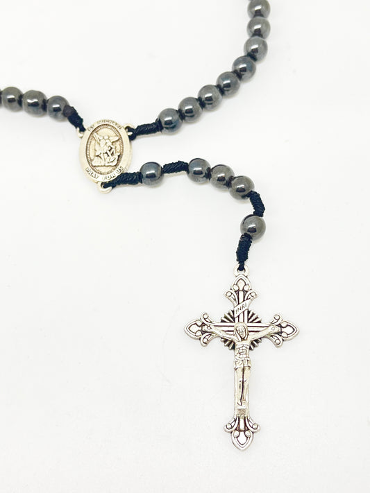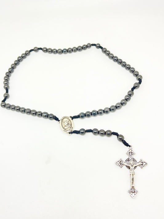 Hematite Miraculous Medal Corded Rosary (8mm)