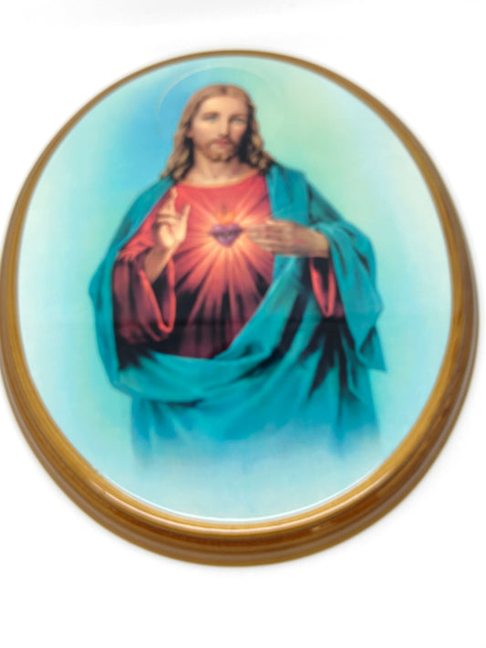 Sacred Heart of Jesus Oval Wood Plaque 10"