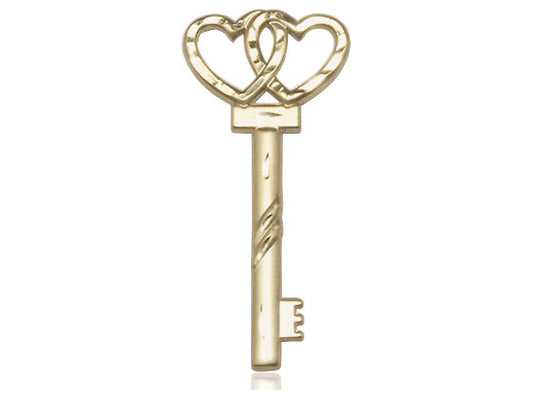 14kt Gold Filled Small Key with Double Heart Pendant on an 18-Inch Gold Filled Light Curb Chain